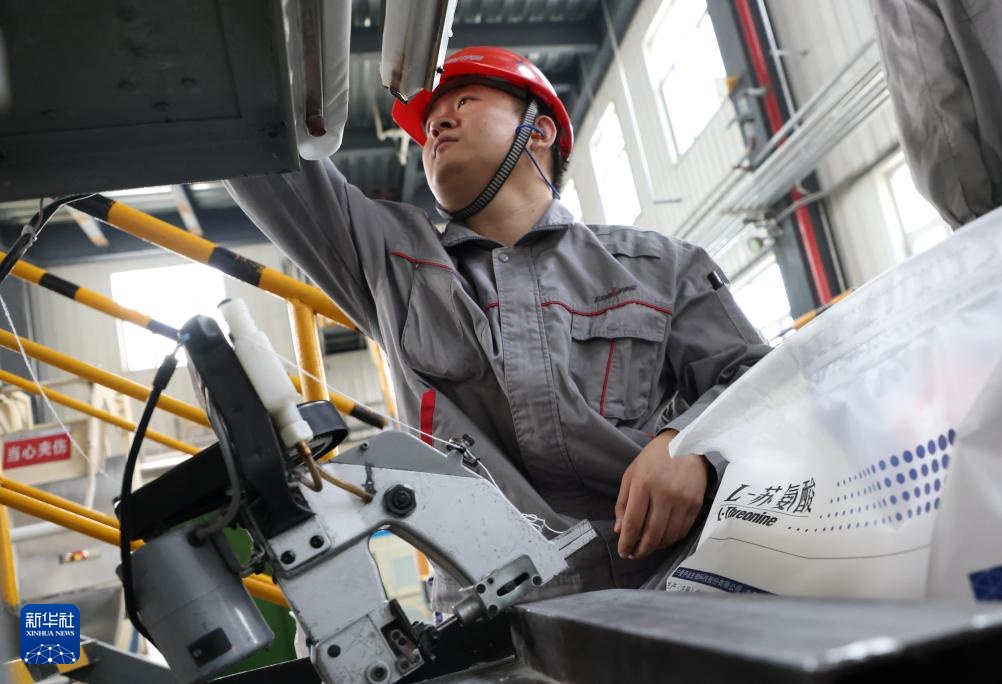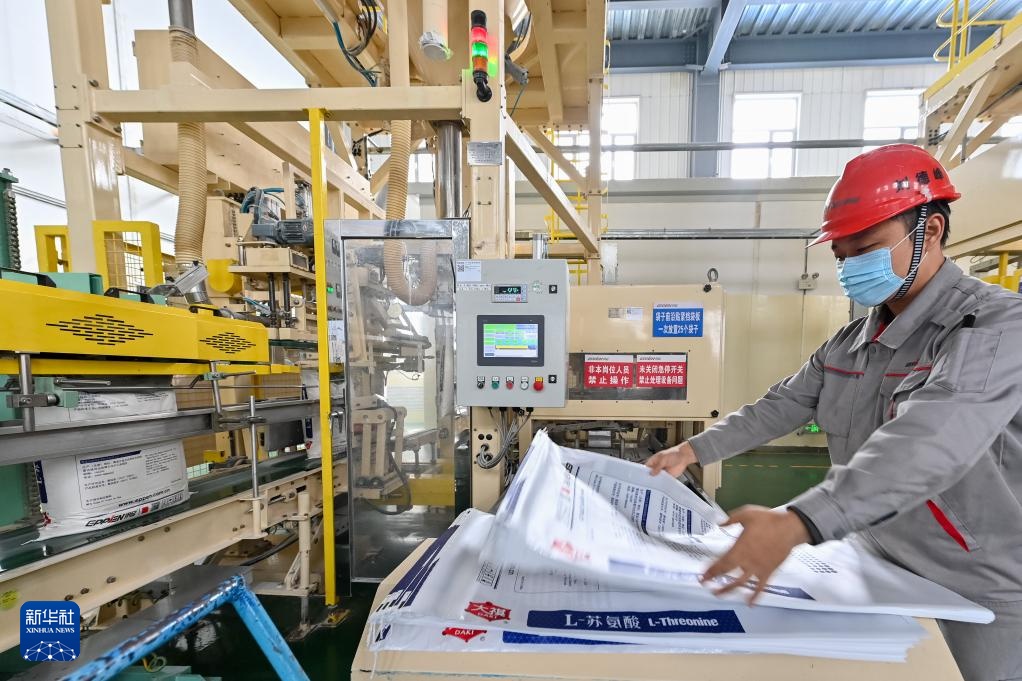 9月20日,在位于黑龙江省大庆市杜尔伯特蒙古族自治县的黑龙江伊品生物科技有限公司生产车间,工人在生产作业。