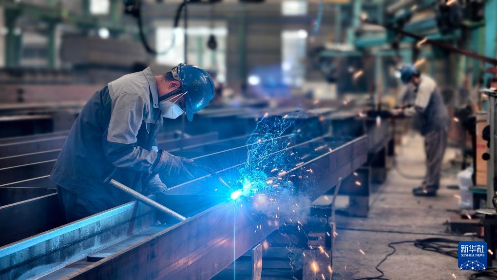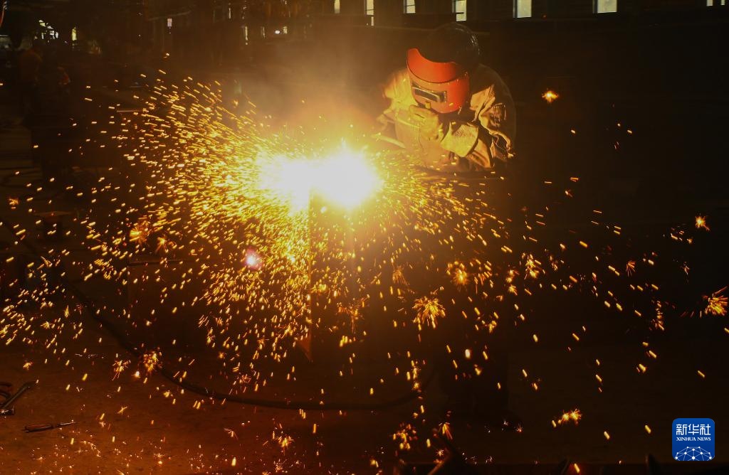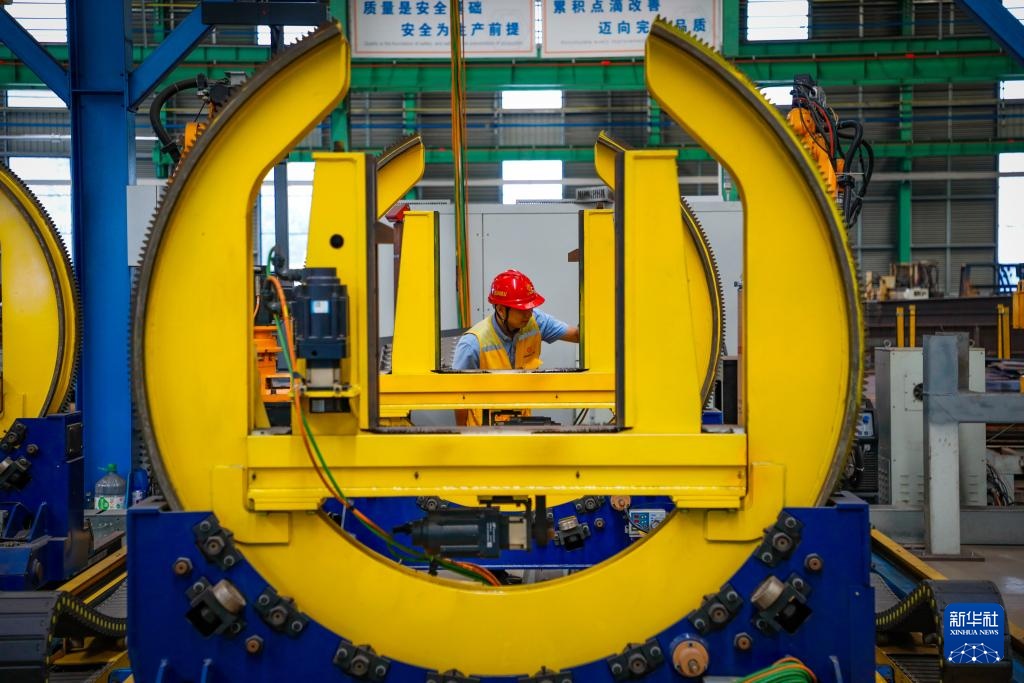9月21日,在山东三维重工有限公司,工人在查看焊接设备。