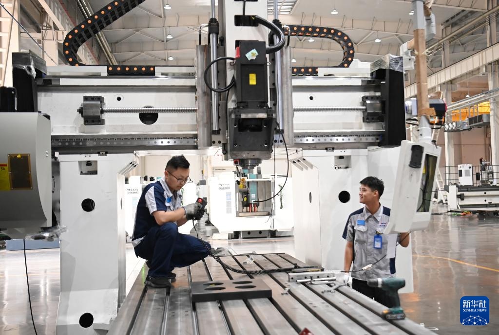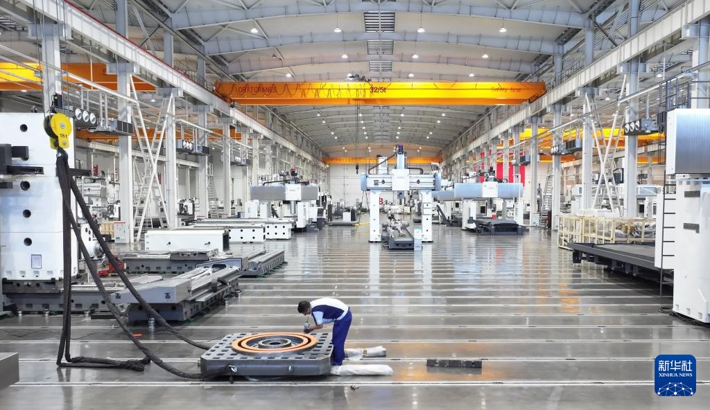 9月21日,山东海鲲数控设备有限公司工人在组装数控机床。
