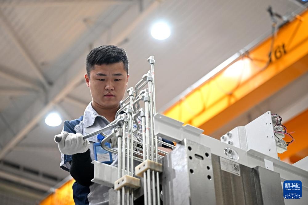 9月21日,在山东省滕州市三维国际高端装备制造产业园,工人在生产线上工作。
