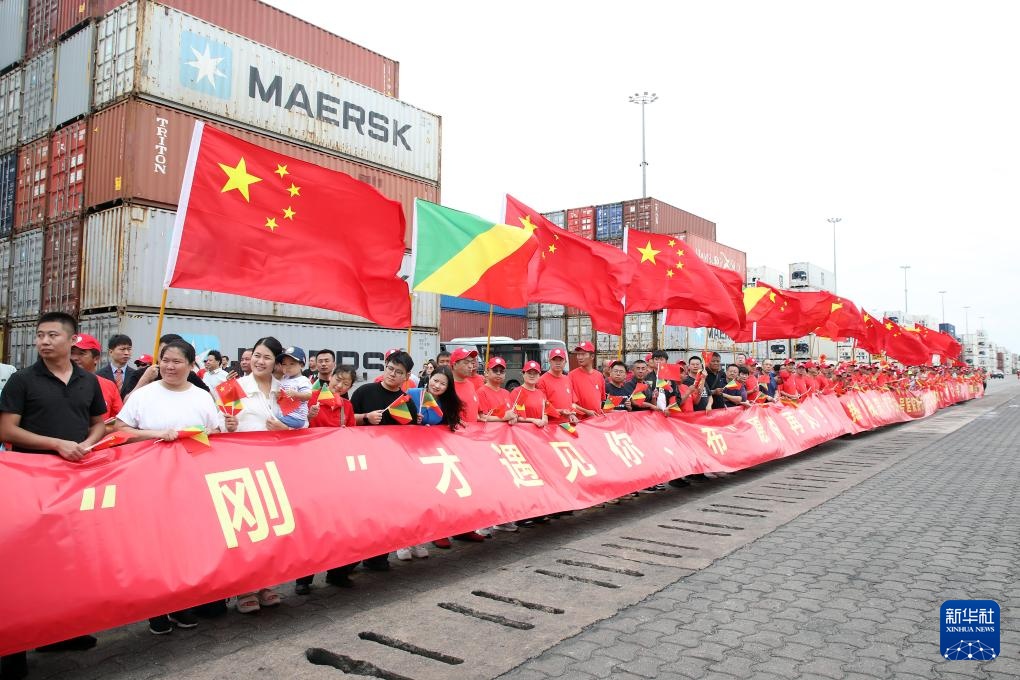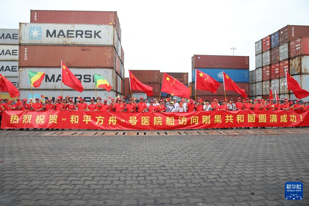 这是9月22日在刚果(布)黑角港拍摄的中国海军“和平方舟”号医院船欢送仪式现场。