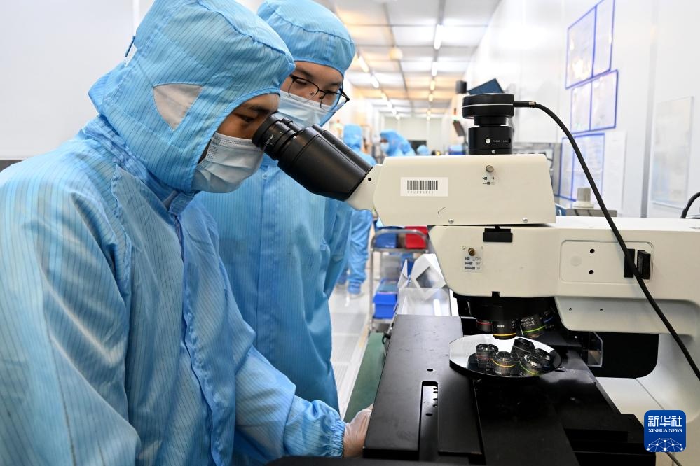 9月12日,在位于安徽省蚌埠市的“中国传感谷”,安徽北方微电子研究院集团有限公司的工作人员在检测MEMS晶圆。