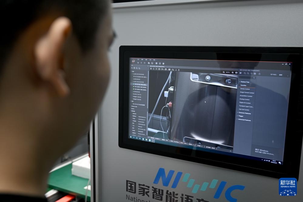9月20日,在位于安徽省合肥市的“中国声谷”国家智能语音创新中心,工作人员在调试一款工业AI质检系统。