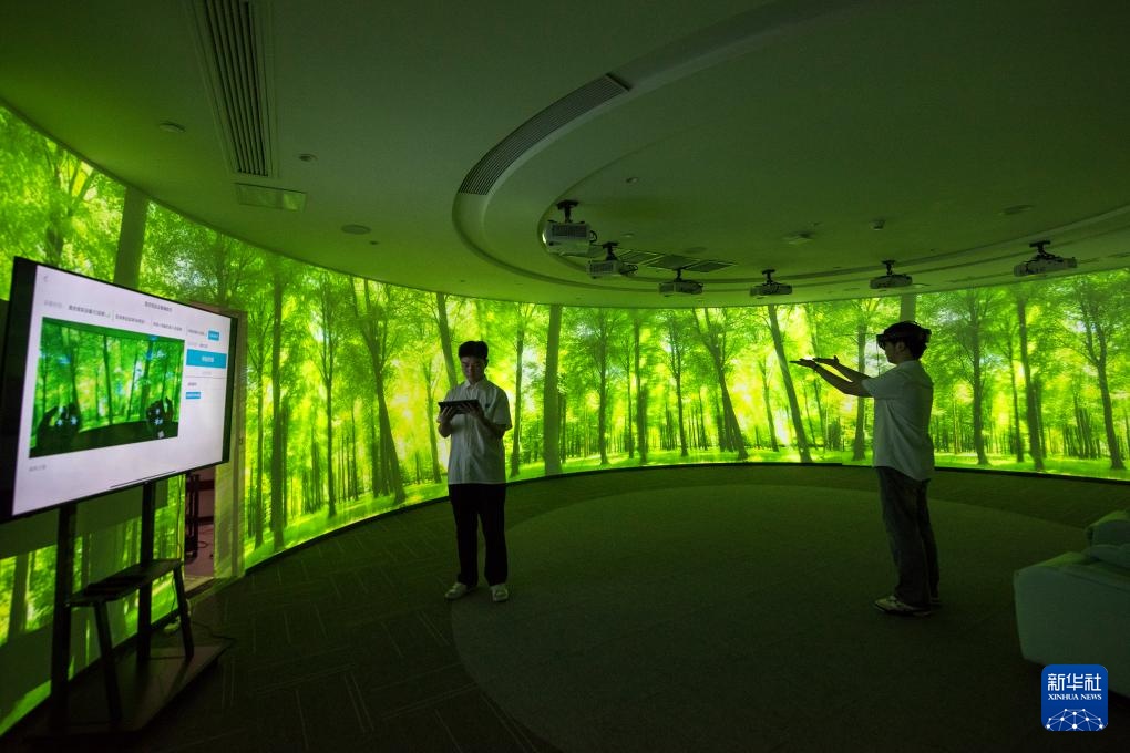 9月20日,在位于安徽省芜湖市的“中国视谷”,安徽睿酷医疗科技有限责任公司的工作人员在演示疼痛缓解康复训练软件。