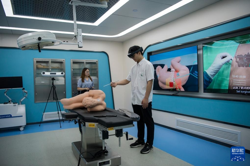 9月20日,在位于安徽省芜湖市的“中国视谷”,安徽睿酷医疗科技有限责任公司的工作人员在模拟手术室里演示数字化手术辅助平台。
