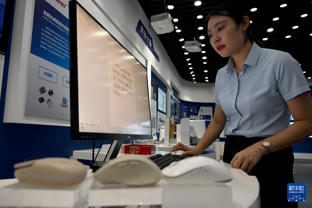9月20日,工作人员在位于安徽省合肥市的“中国声谷”体验中心演示一款带有语音识别输入功能的智能鼠标。