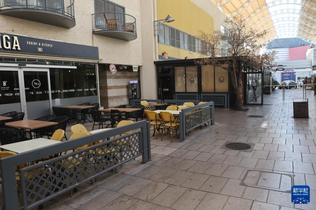 这是9月22日在以色列北部城镇比亚利克拍摄的空荡的沿街餐厅。