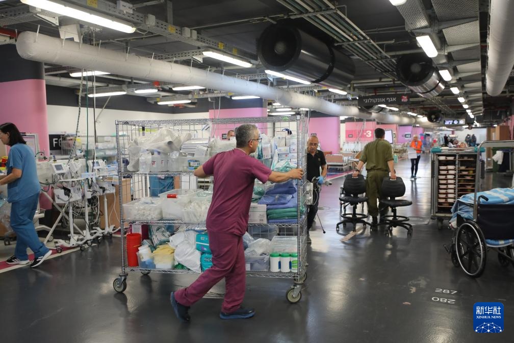9月22日,在以色列北部城市海法的一家大型医院,人们在地下临时院区里忙碌。