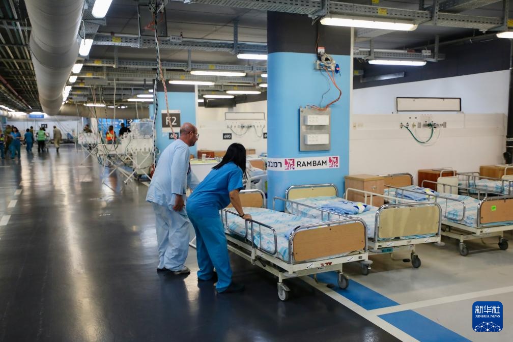 9月22日,在以色列北部城市海法的一家大型医院,随着黎以局势紧张加剧,人们将住院患者转移至地下临时院区以避免受到袭击伤害。