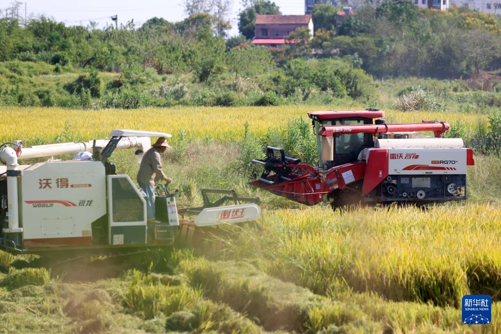 9月22日,农机手驾驶收割机在湖北武汉江夏区法泗街道大路村收割制种水稻。