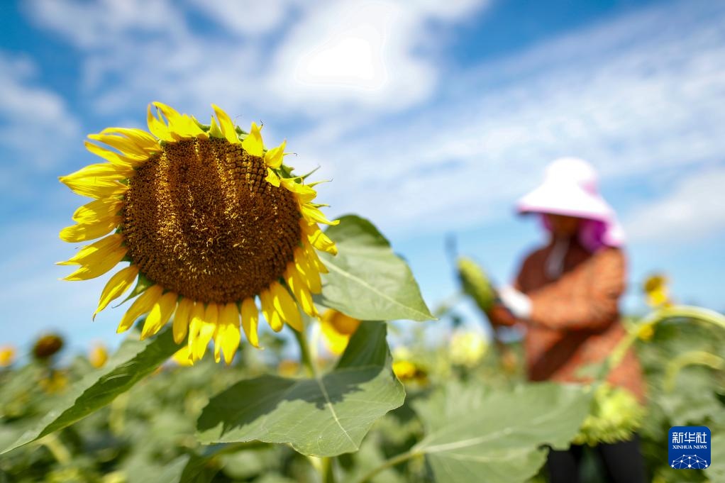 9月22日,在江苏省盐城市大丰区万盈镇万丰绿茵现代农业园区,农民在采收向日葵。