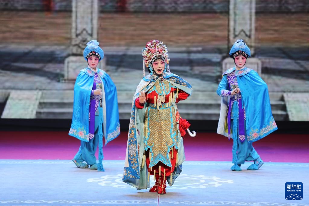 9月21日,参赛者杨丽丽(中)在甘肃省白银市会宁县表演晋剧《大脚皇后》。