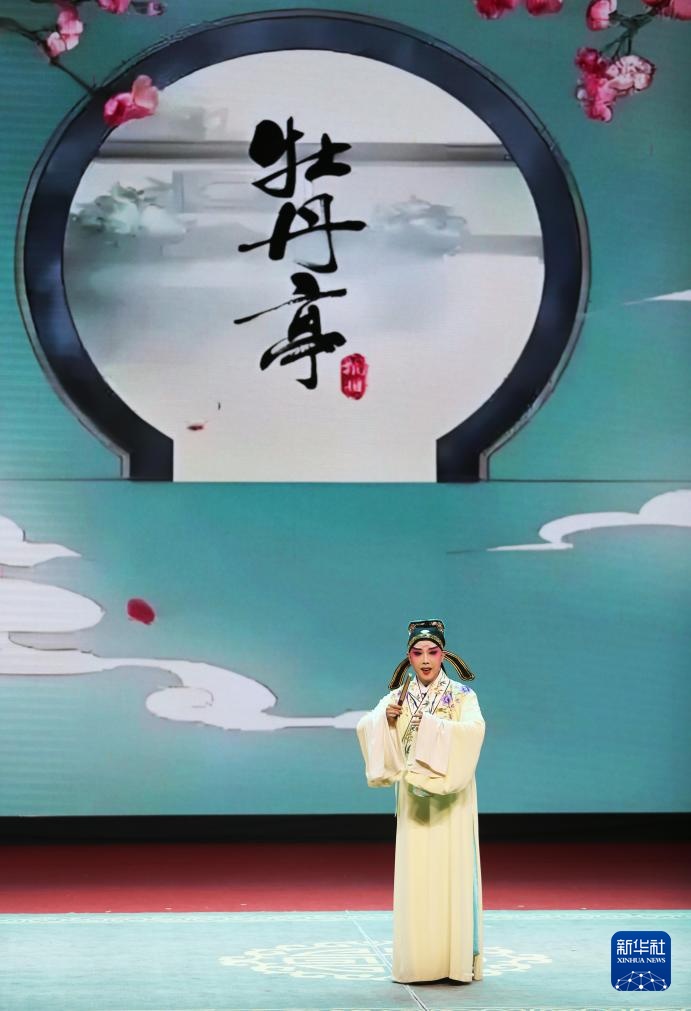 9月21日,参赛者王奕铼在甘肃省白银市会宁县表演昆曲《牡丹亭》。