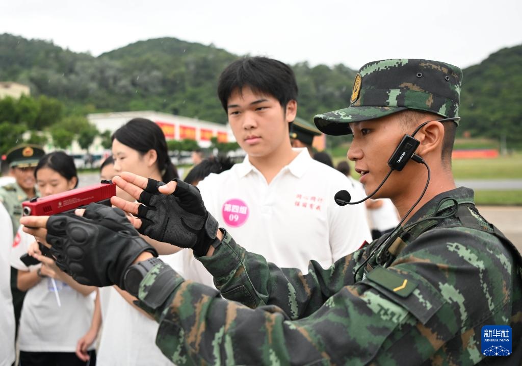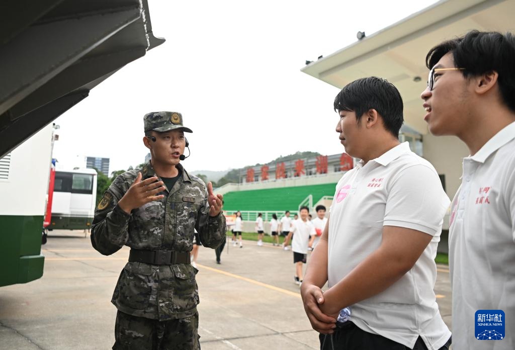 当日,武警广东总队联合粤港澳多部门在广州举行“同心同行·强国有我”港澳青少年进军营主题活动,500余名港澳青少年走进军营,“零距离”体验军营生活。活动展示了猛士突击车、榴弹发射器、无人机等5大类60余种装备,现场演示了擒敌、攀登、射击等课目,并邀请港澳青少年体验模拟射击。