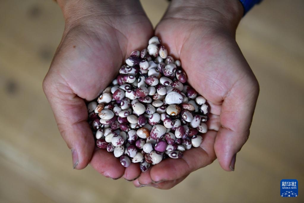 这是杨正熙在位于贵州省黎平县尚重镇洋洞村的种子博物馆里保存的花豆种子(5月18日摄)。
