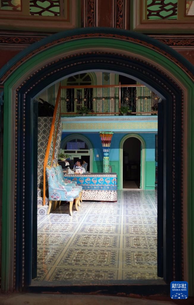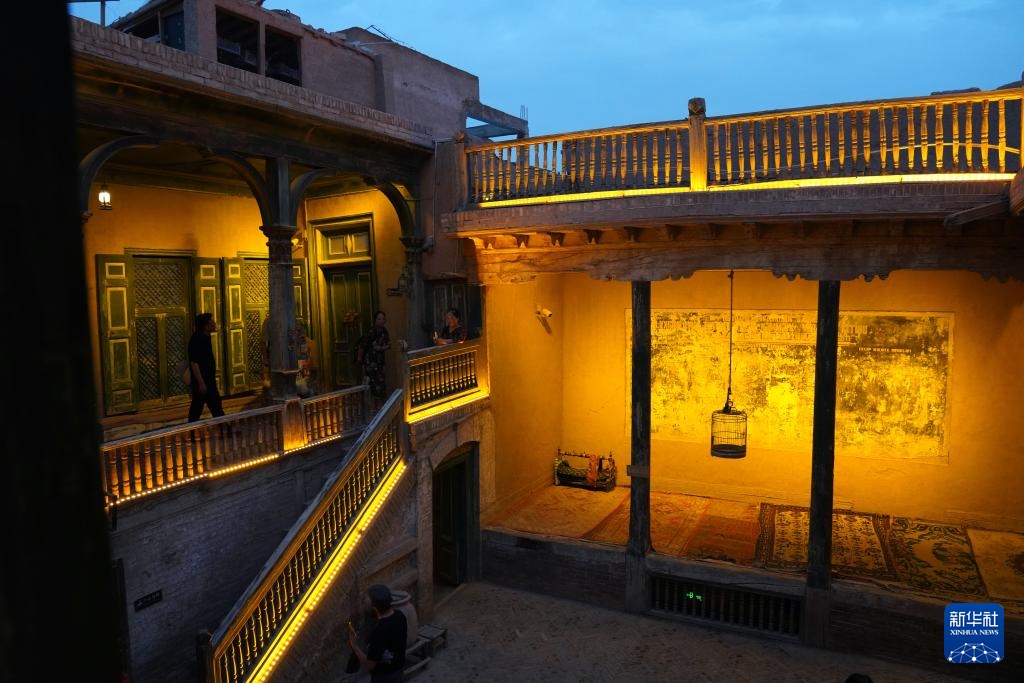 9月19日晚,在新疆喀什古城景区,游客在“买买提的老房子”参观游览。买买提的老房子是一座有着300多年历史的民居,房间高低错落、空间层次丰富。