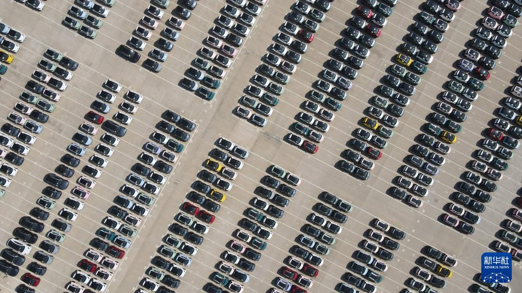 2022年10月12日在安徽省芜湖市拍摄的等待交付的奇瑞新能源汽车(无人机照片)。