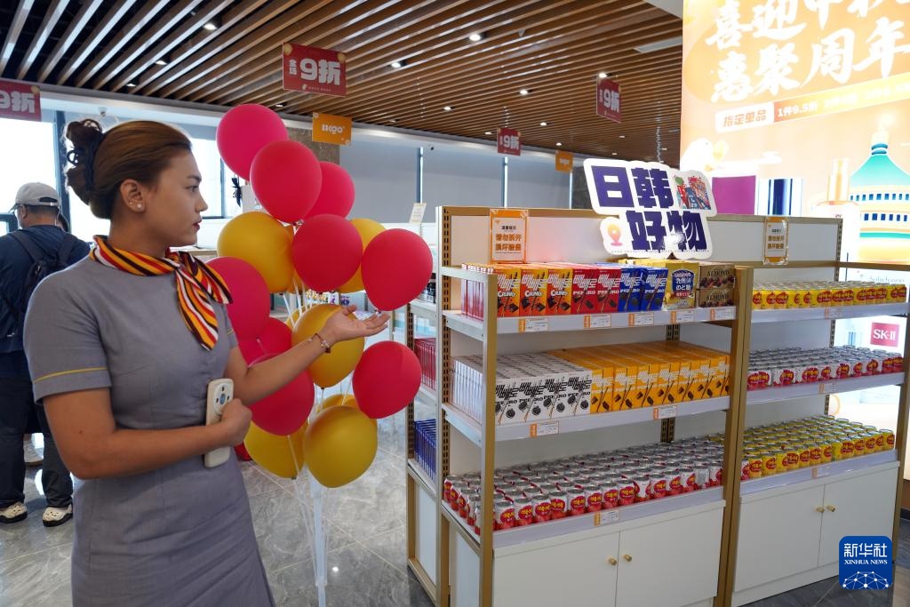 9月19日,在新疆喀什跨境电商进出口商品展示交易中心,一位顾客走入南疆保税进口商品展销馆。