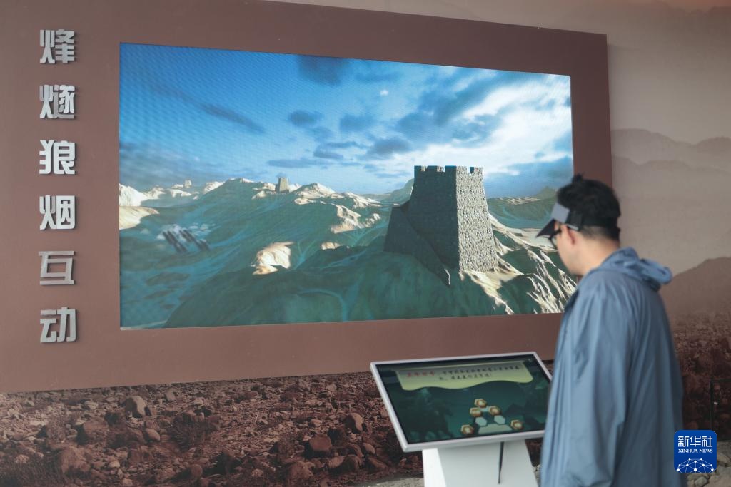 9月23日,游客在乌什别迭里烽燧长城国家文化公园展馆内体验“烽燧狼烟互动”。
