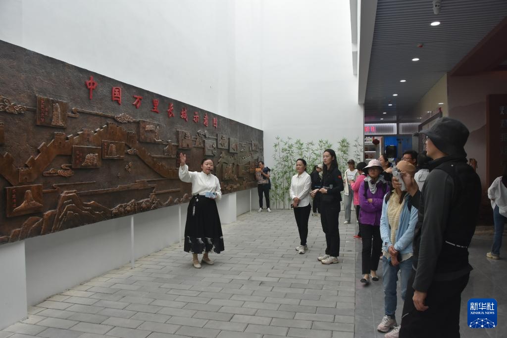 9月23日,游客在乌什别迭里烽燧长城国家文化公园展馆内游览。