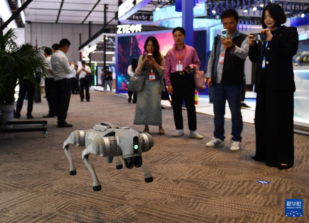 9月24日,参会嘉宾在2024世界计算大会专题展上观看机器狗的运动演示。