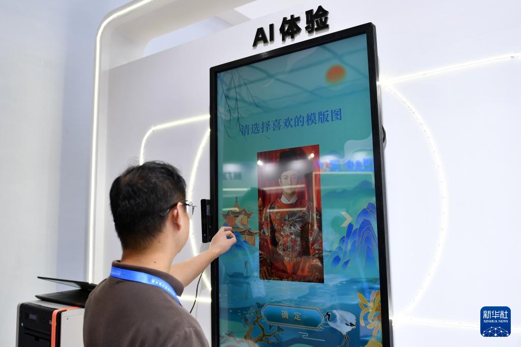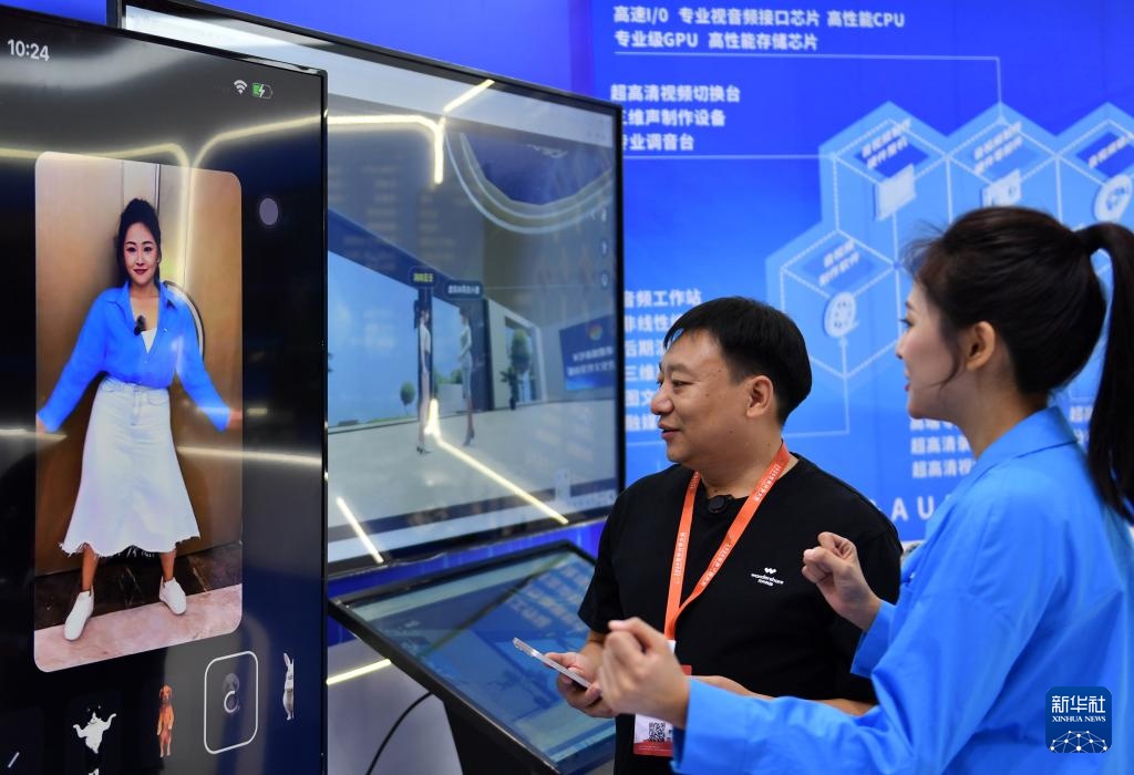 9月24日,参会嘉宾(右)在2024世界计算大会体验AI视频生成。