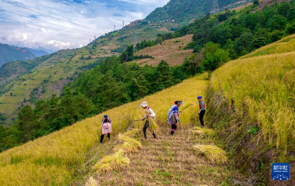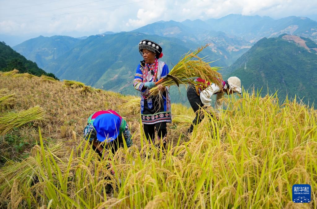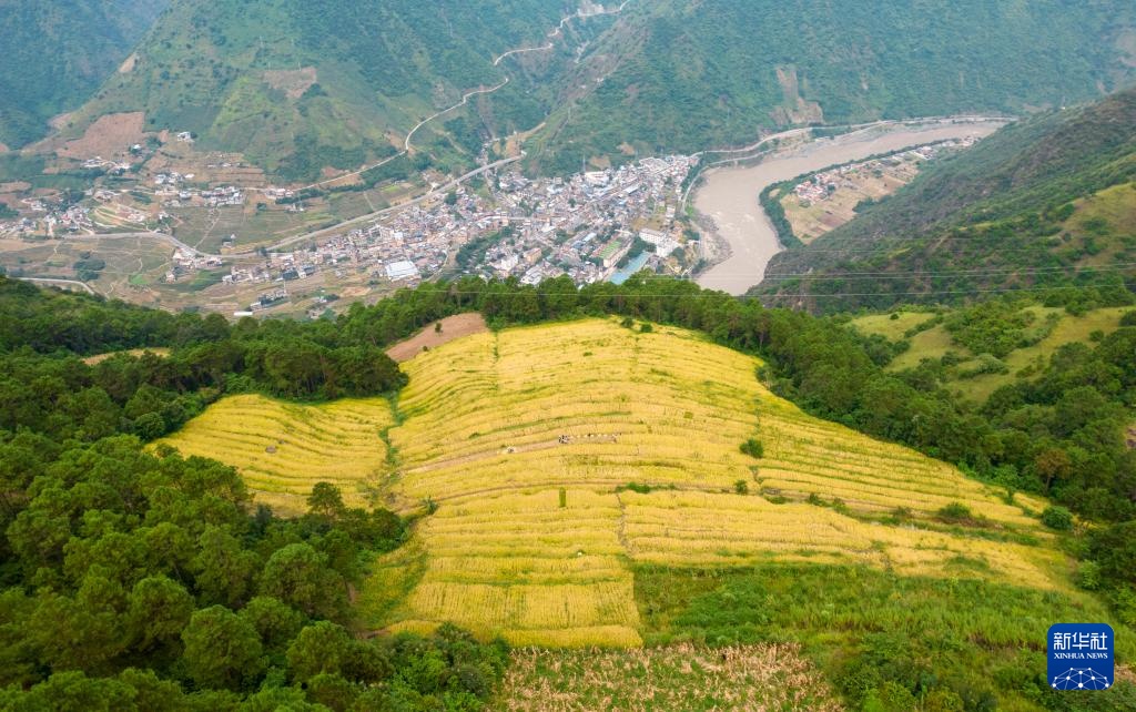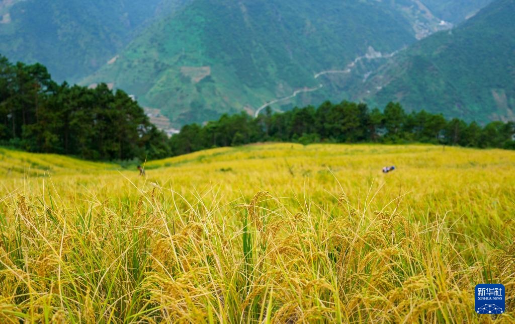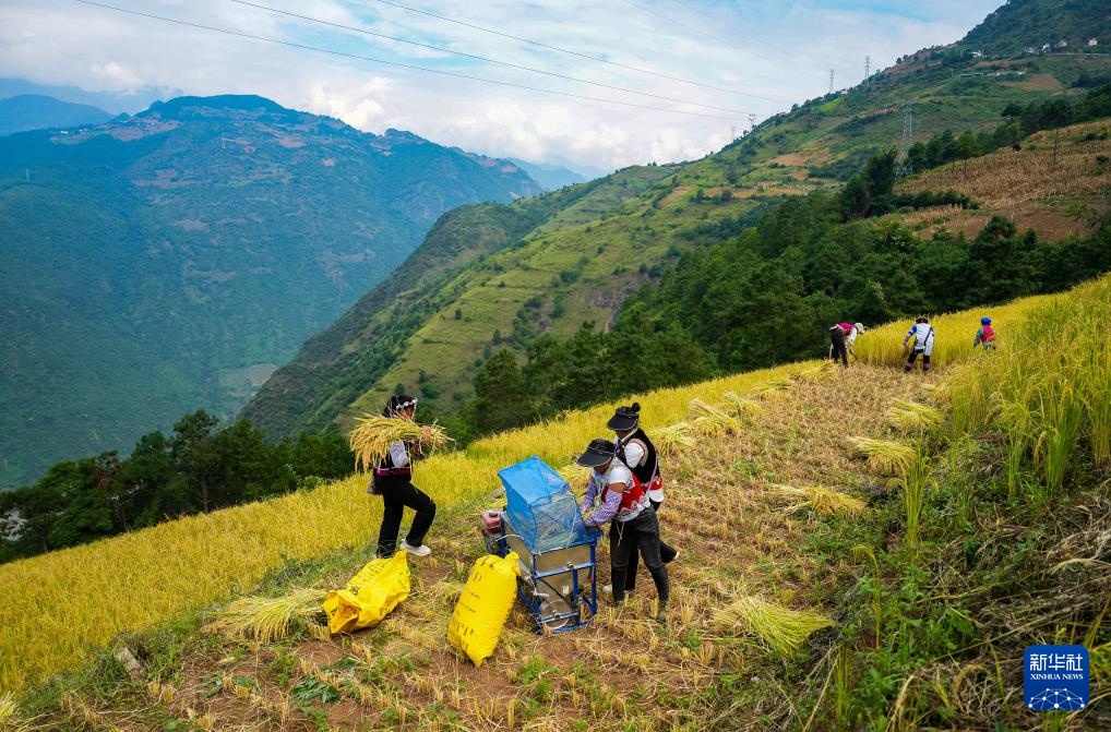 秋收时节,云南省怒江傈僳族自治州万亩旱地优质稻进入收割期。