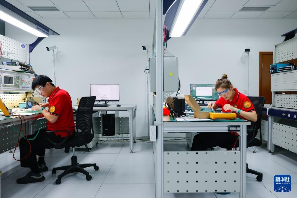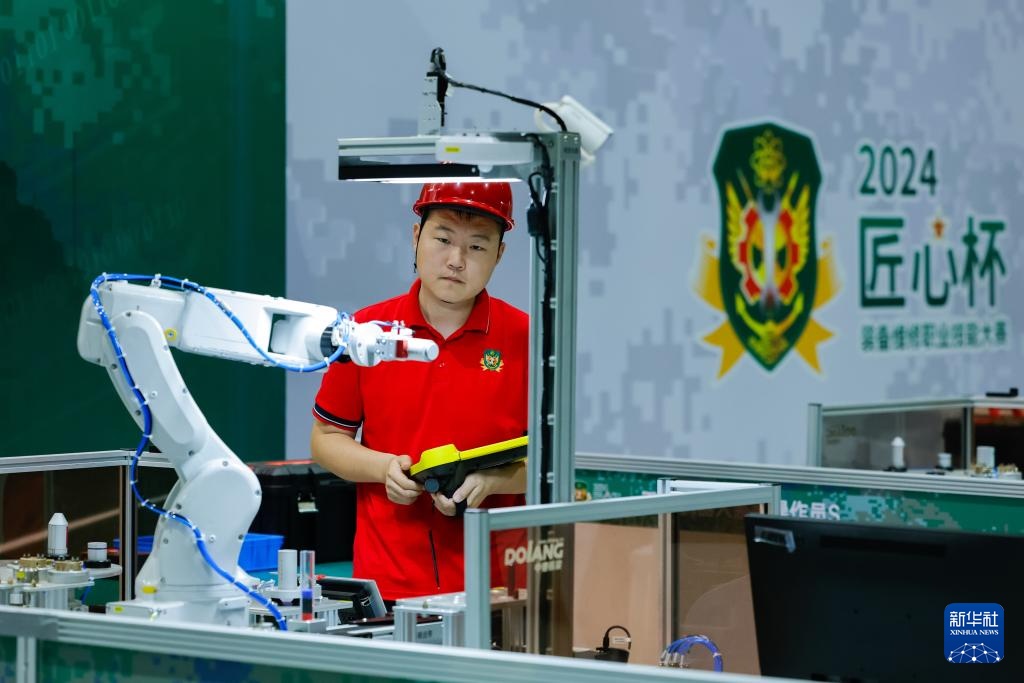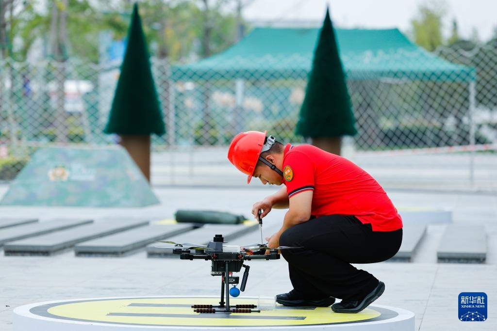 9月24日,选手在无人机装调检修工决赛中准备执行飞行任务。