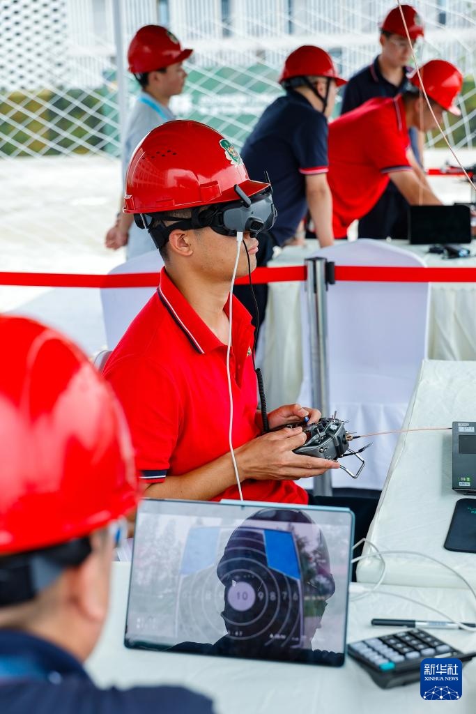 9月24日,选手在无人机装调检修工决赛中执行飞行任务。