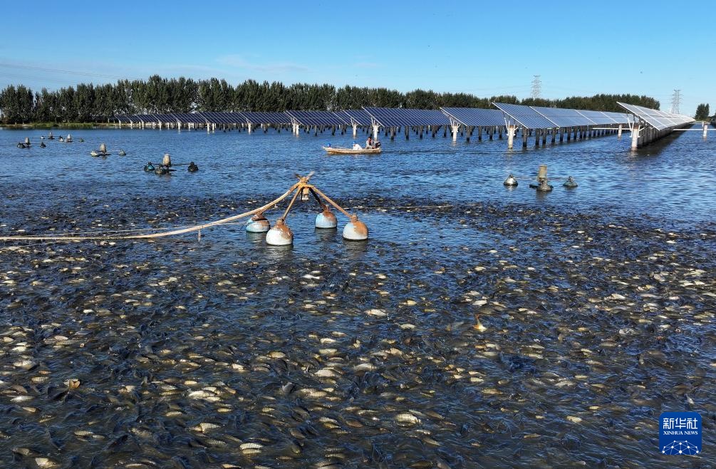 9月24日拍摄的河北省唐山市丰南区黑沿子镇一处“渔光互补”发电场(无人机照片)。