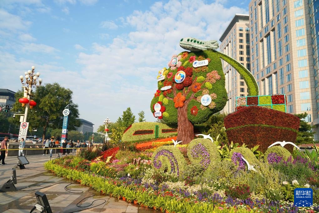 9月25日在北京长安街东单路口附近拍摄的“开放中国”花坛。