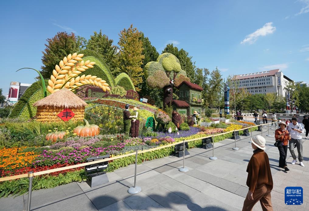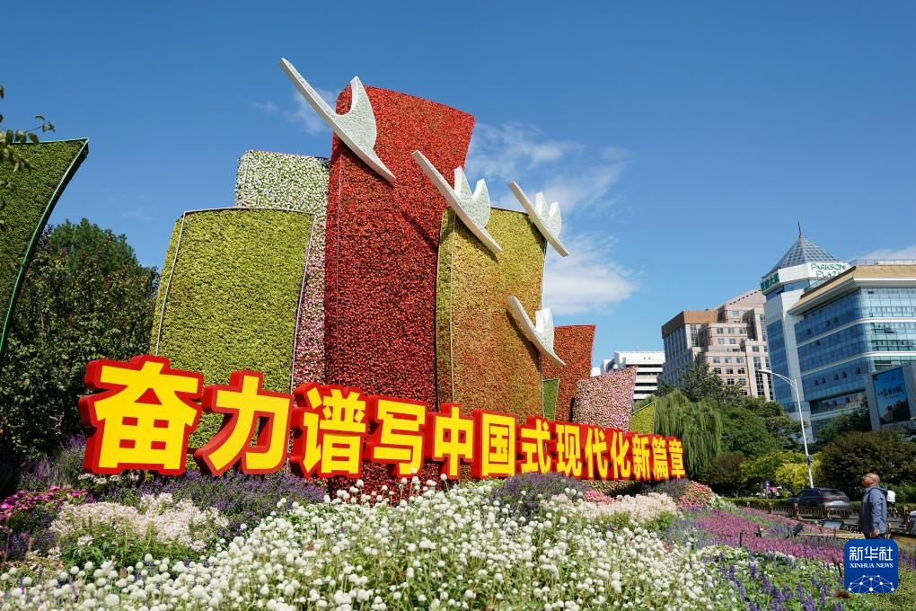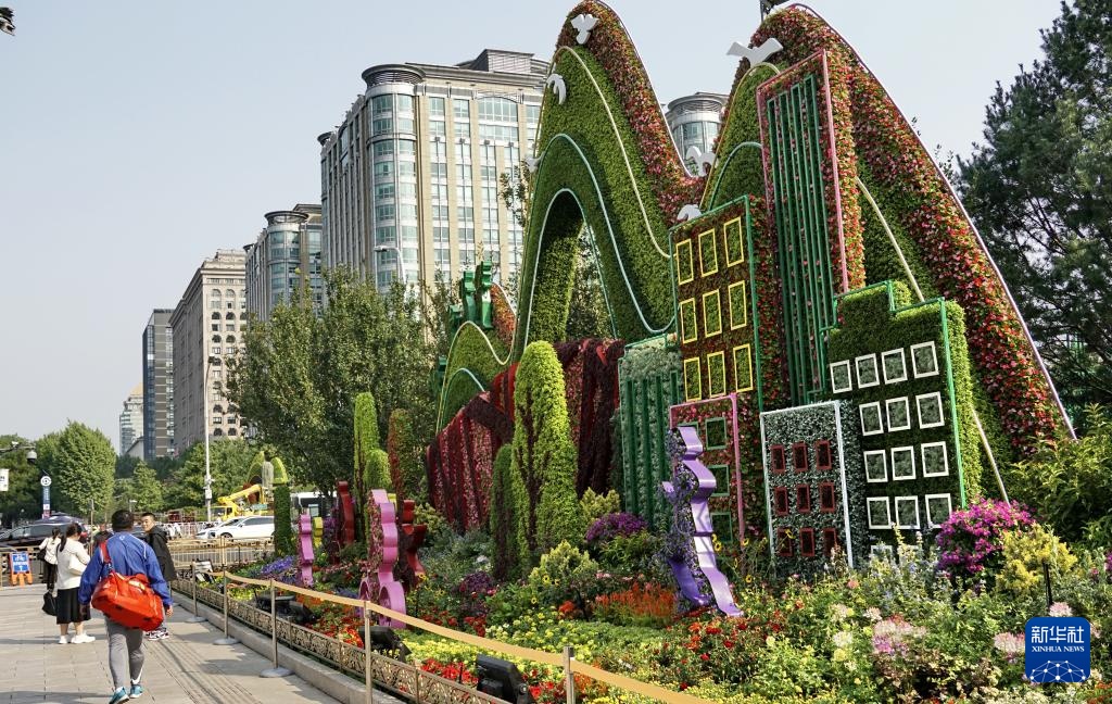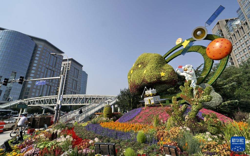 9月25日拍摄的北京长安街建国门西北角“普天同庆”花坛。