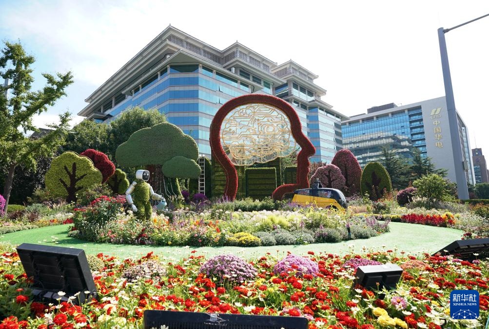 9月24日在北京东长安街东单路口东北角拍摄的“创新中国”花坛。