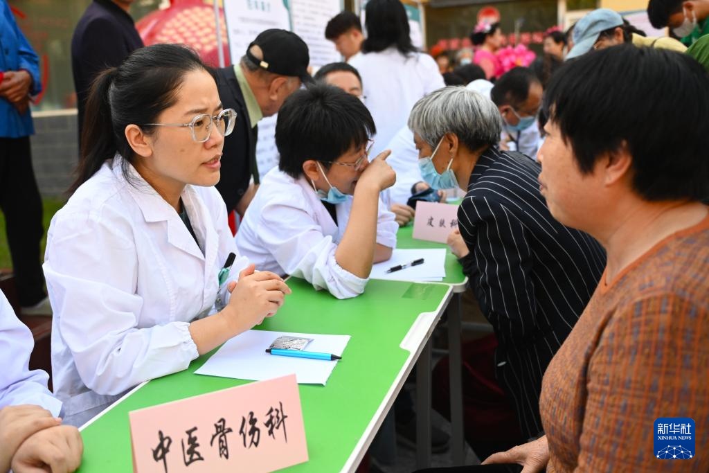 9月25日,工作人员在长城花园社区广场对居民进行义诊。