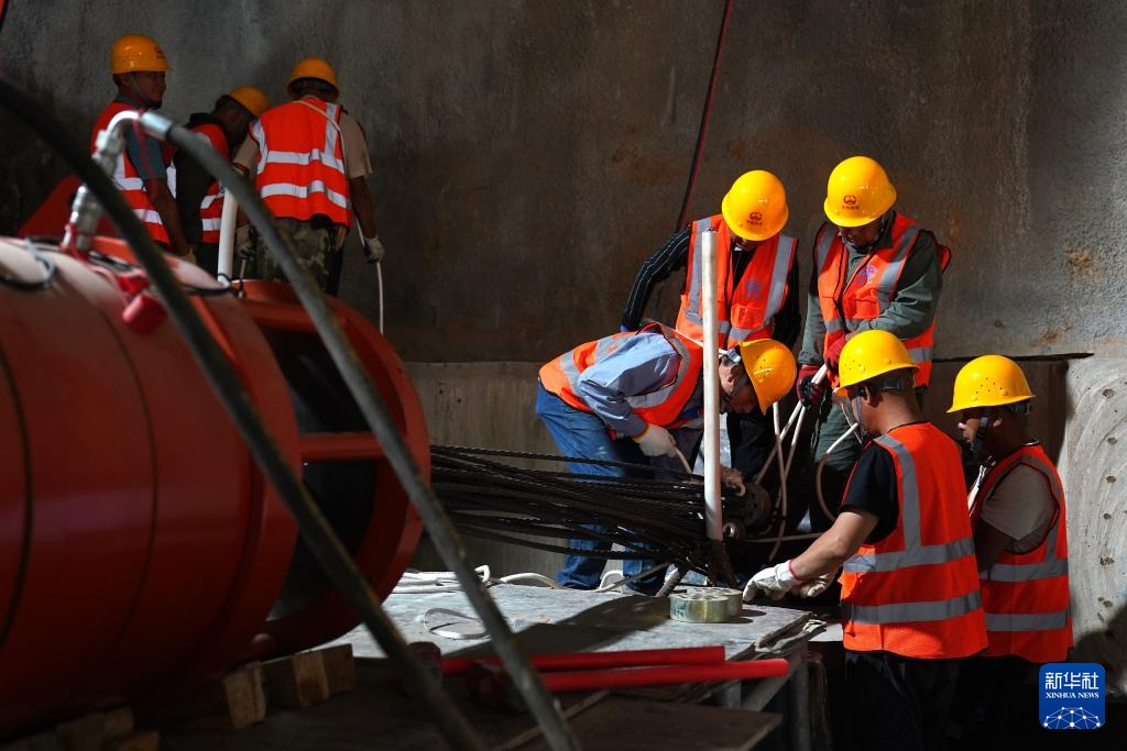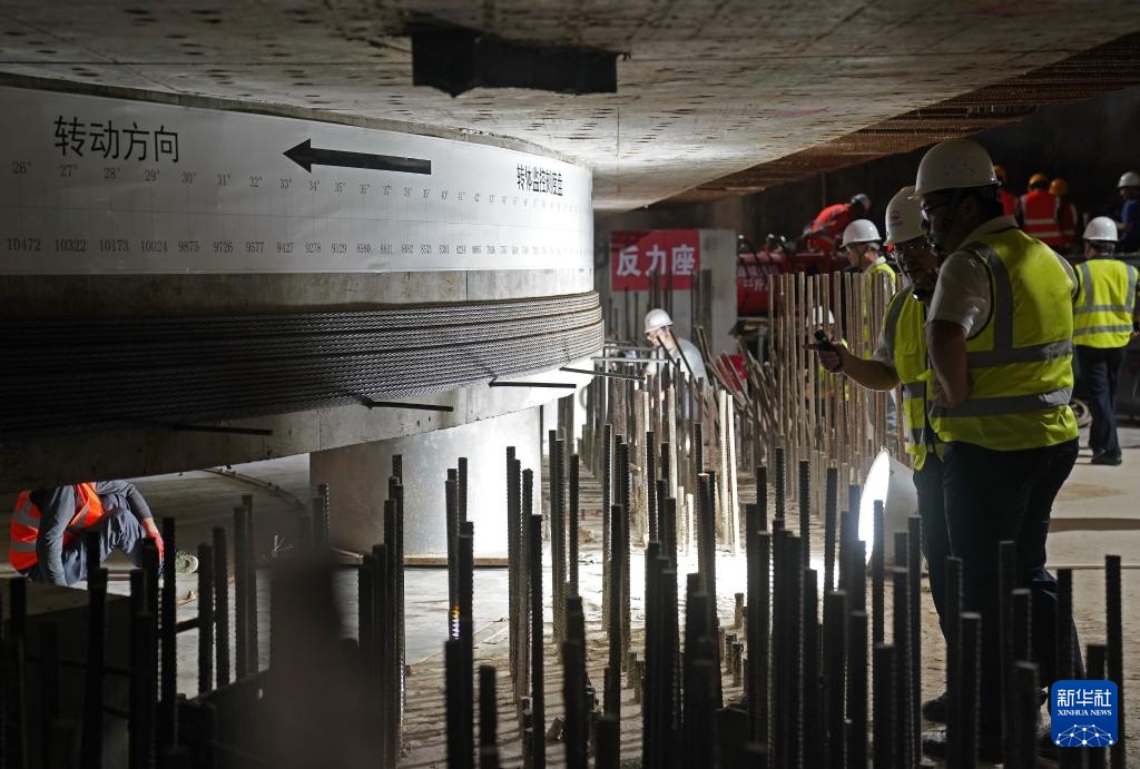 9月26日,施工人员在斜拉桥转体工程现场作业。