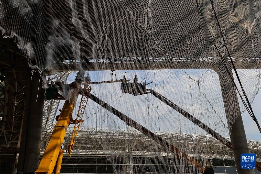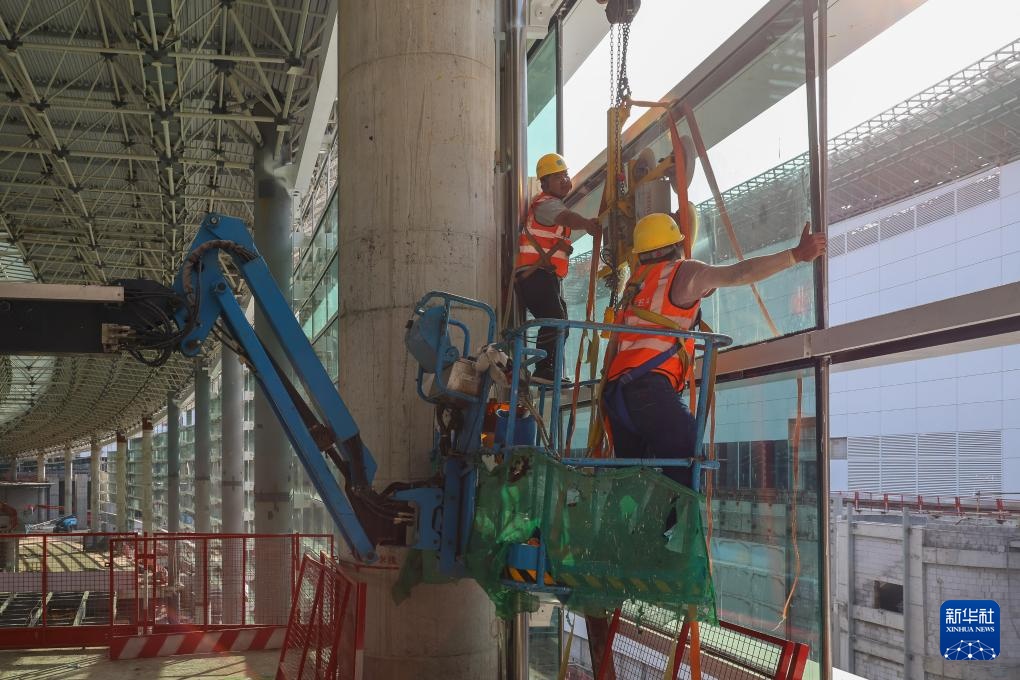 9月26日拍摄的广州白云国际机场T3航站楼东指廊幕墙施工现场。