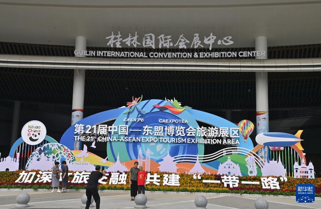 当日,第21届中国—东盟博览会旅游展区在广西桂林国际会展中心开幕。本届旅游展区以“加深文旅交融,共建‘一带一路’”为主题,展览总面积6万平方米,共吸引43个国家和地区的旅游部门及企业参加。