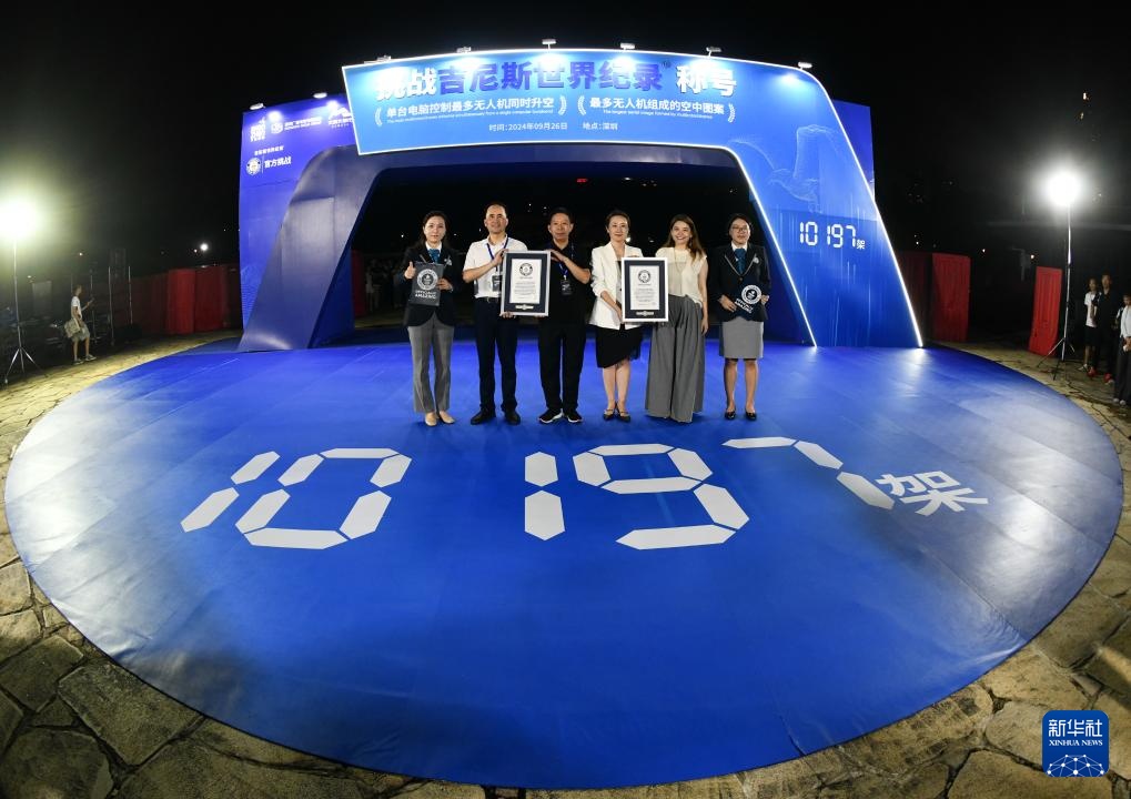 9月26日,在深圳湾举行的无人机表演凭借10197架无人机创造了“单台电脑控制最多无人机同时升空”“最多无人机组成的空中图案”两项吉尼斯世界纪录。