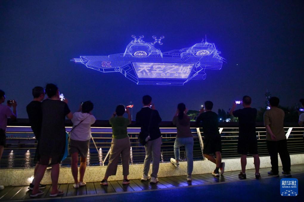 9月26日晚,以“天空之城 大有可能”为主题的深圳无人机国庆启幕大秀在广东深圳湾公园上空举行,10197架无人机为市民游客带来一场科技与艺术融合的视觉盛宴。