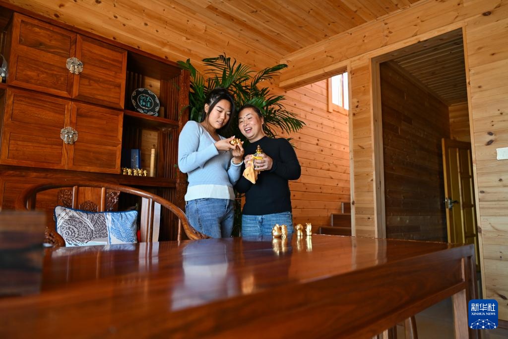 9月24日,村民在上官地村里的民宿客厅清洁摆件。