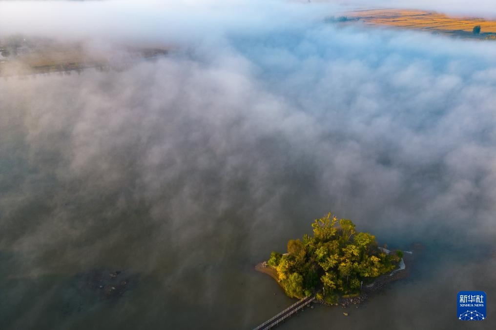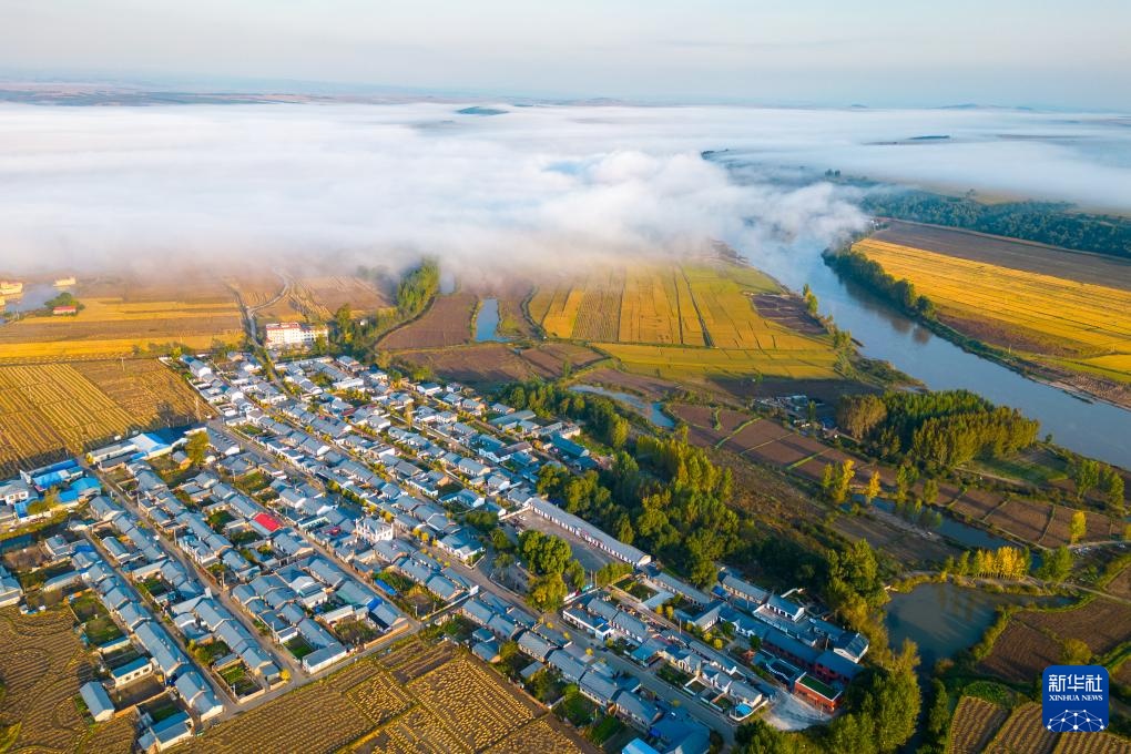 在黑龙江省宁安市渤海镇上官地村,“石板稻田”丰收在即,微风拂过,稻浪滚滚,美不胜收。村落在晨雾中若隐若现,温暖的阳光洒照在玄武湖上,金色的湖面波光粼粼。