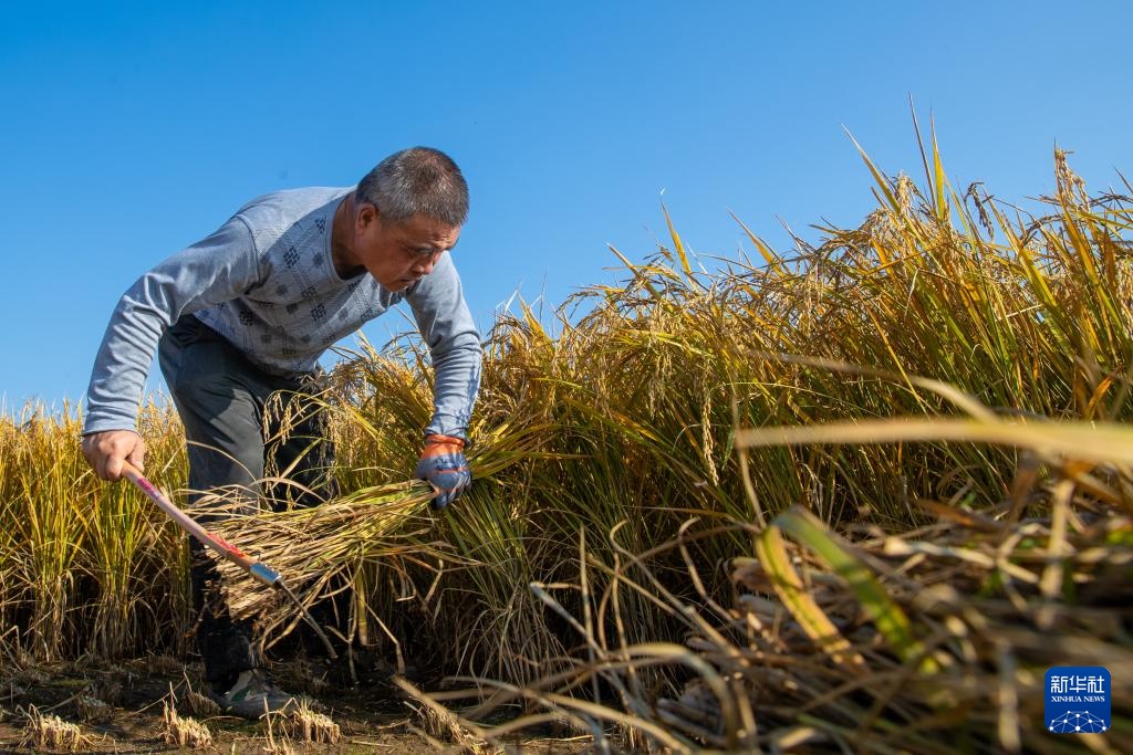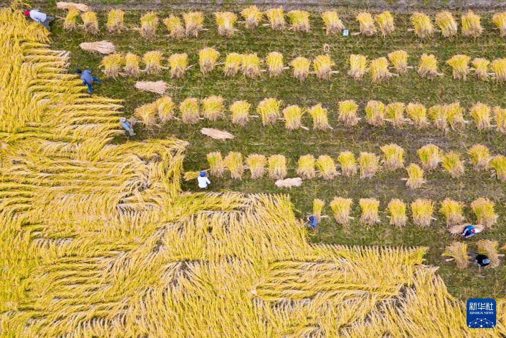 9月25日,在上官地村,村民在收割水稻。