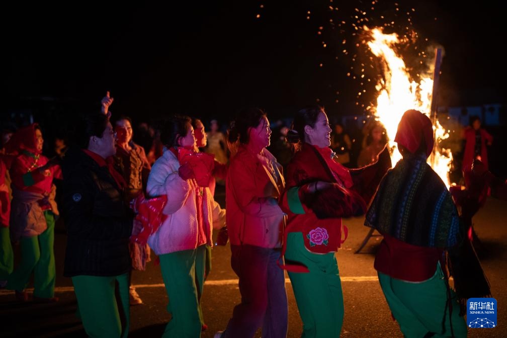 9月20日,在上官地村,村民在篝火旁庆祝丰收。