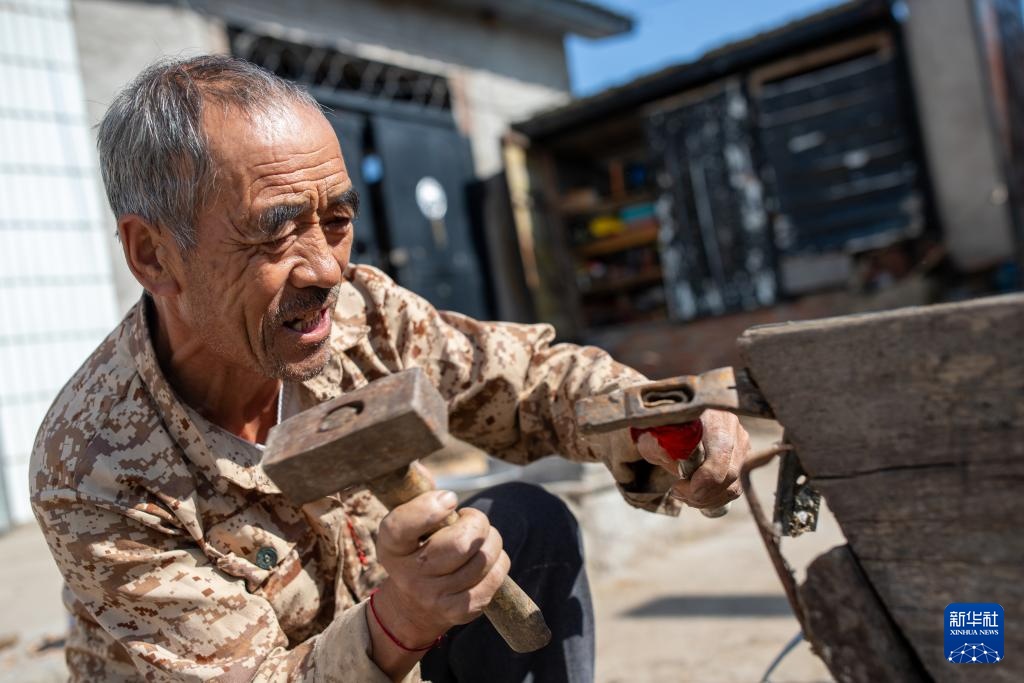 9月25日,在上官地村,村民杨富海在拆卸牛槽板。