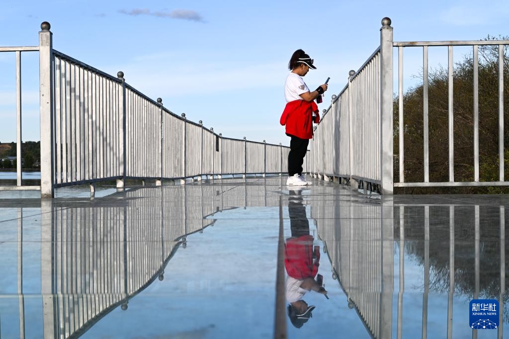 这是上官地村中围湖而建的玄武湖观光栈道(9月24日摄)。