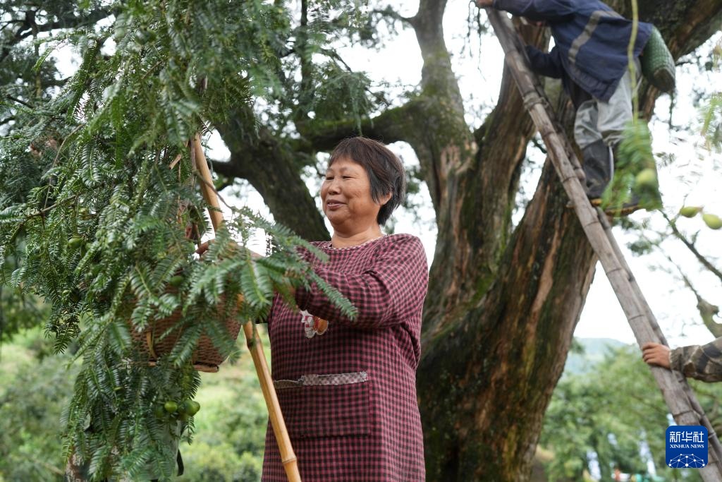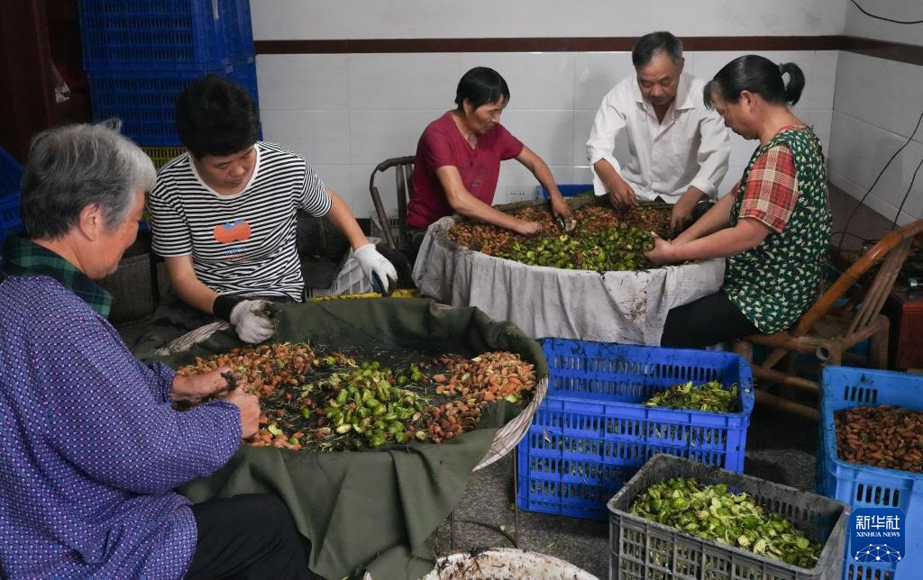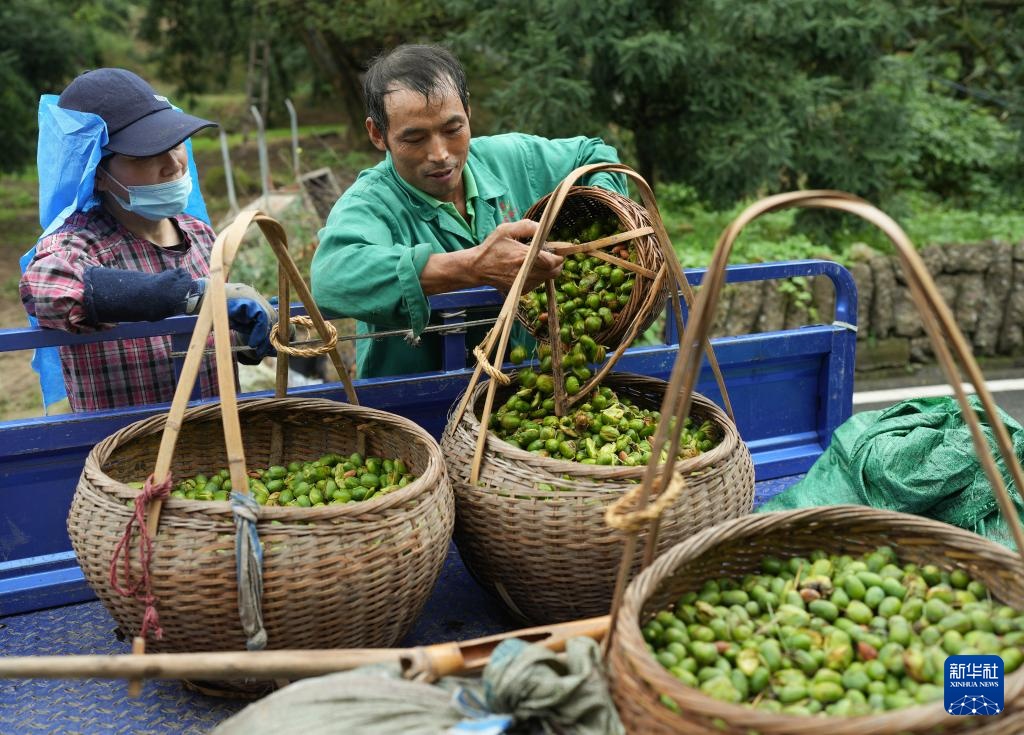 近日,浙江省诸暨市特色农产品香榧迎来集中采摘期。在诸暨市赵家镇香榧国家森林公园,榧农抢抓农时采摘青果,进行剥皮、堆沤等工序,力争在十月中旬完成炒制并上市销售。