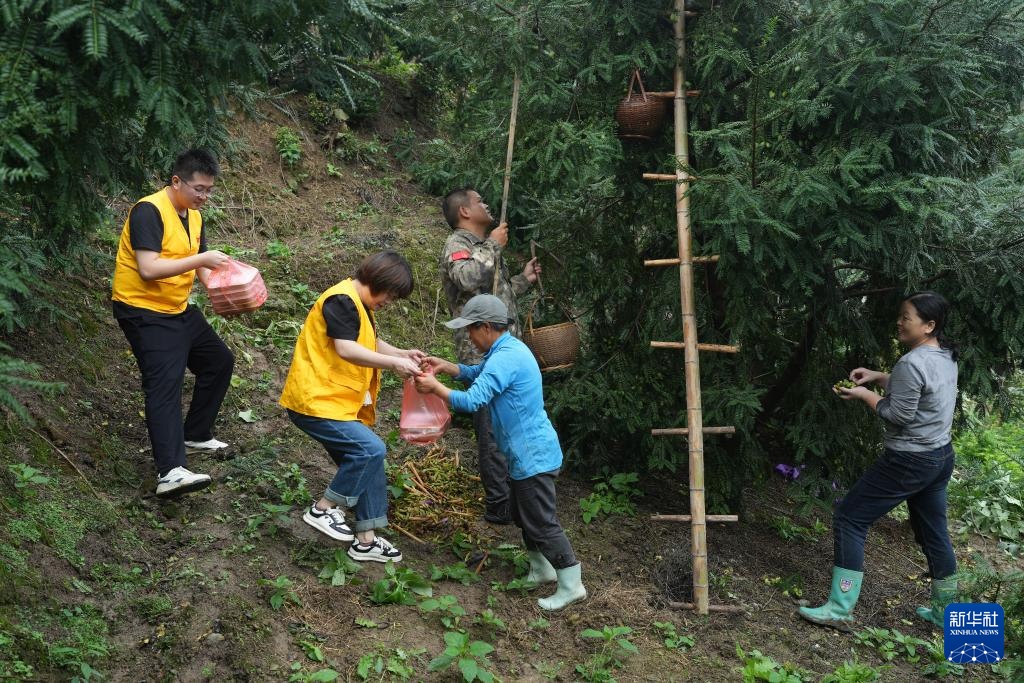 9月27日,在赵家镇香榧国家森林公园,党员志愿者将午餐送到榧农手中。