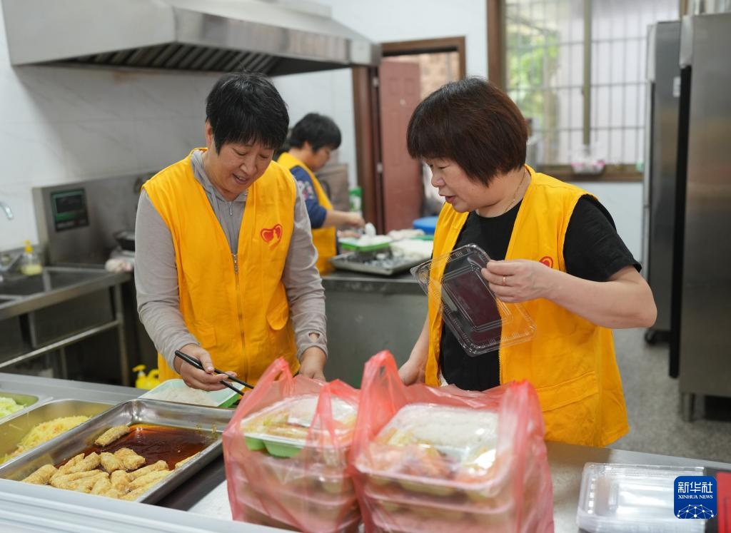 9月27日,赵家镇榧王村“爱心食堂”的工作人员为订餐的榧农准备午餐,党员志愿者会为榧农送餐上山。