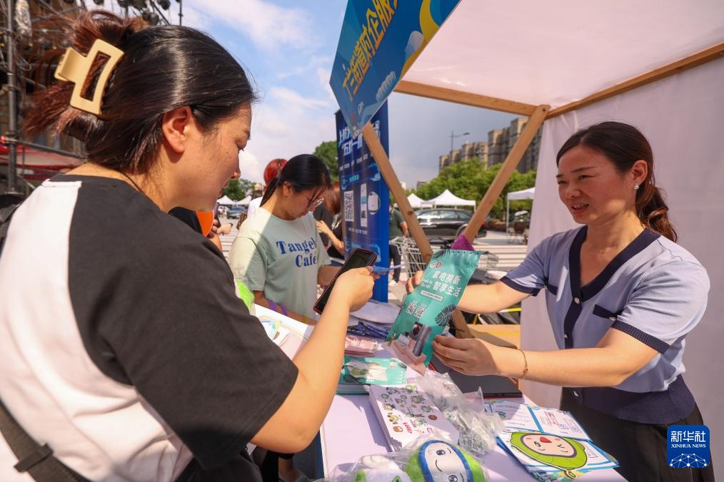 9月27日,消费者(左一)在“美好生活 焕新出发”消费品以旧换新展会现场扫码了解上城区家电以旧换新活动具体介绍。