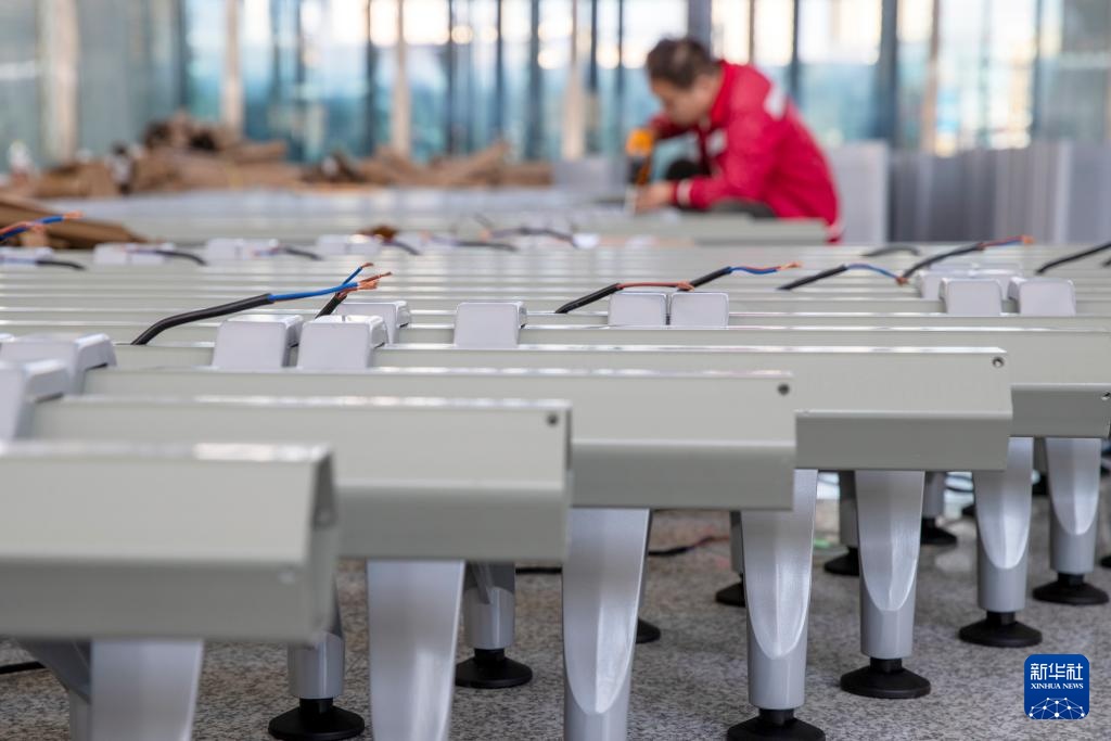 9月27日,工人在铁力站进行喷涂作业(无人机照片)。